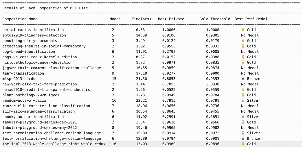 The part that stands out is execution depth. It scored 9 gold medals across 22 MLE-bench tasks, which points to real capability in training, optimization, and applied ML work.